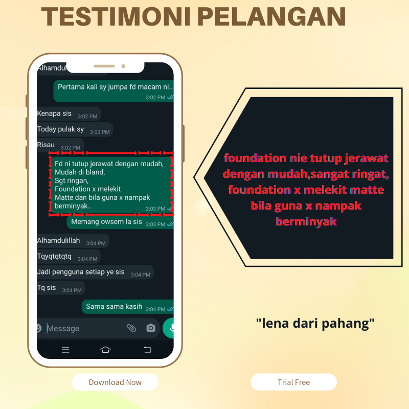 Seringkali dah kan ramai yang kena hadap masalah yang serupa bila pakai foundation. Sukar Nak cari yang betul-betul serasi dan sempurna. Bila Pakai Foundation ada yang macam tepung gomak. Lagi teruk bercapuk-capuk dan susah blend